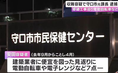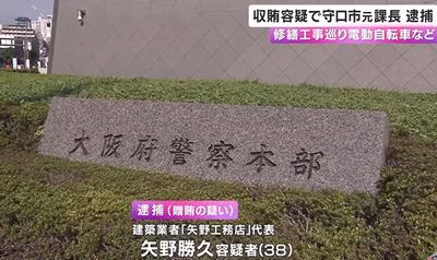 随意契約の修繕工事で有利な選定を行う見返りに、業者から電動自転車や電子レンジなどを受け取ったとして、大阪府の守口市役所参事が逮捕された。