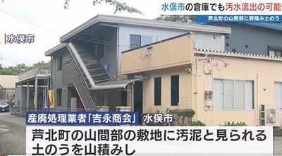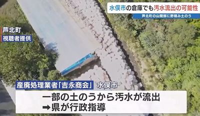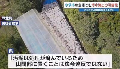 同社は自民党県議で党県連政調会長の吉永和世氏(59)で、吉永氏は熊本日日新聞の取材に「廃棄物ではない」と説明。県も「廃棄物には当たらない」としているが、水俣市の市民団体は「土壌や地下水が汚染されないか心配だ」と指摘している。