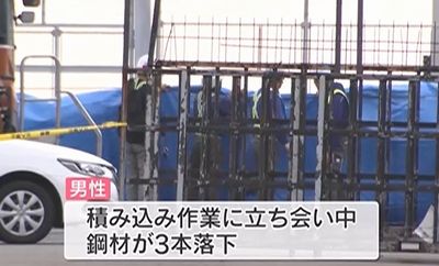警察によると、男性はフォークリフトでトラックに鋼材を積み込む作業に立ち会っていて、バランスを調整していたところ3本が落下、巻き込まれたとみられる。