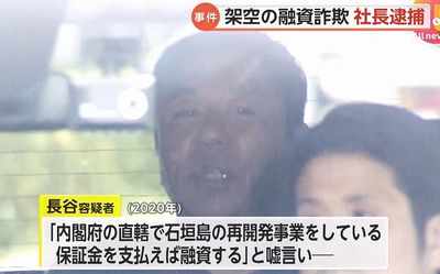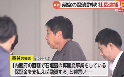 逮捕容疑は20年6~12月ごろ、石垣島の複数の再開発事業を巡って、内閣府の直轄で自身が関係する会社が行っているなどとして、ソフト開発事業を行う会社の代表を務める女性に「参画するのであれば融資する。10%を保証金として払って」と架空の融資話を持ち掛け、会社社長の50代女性から1億2600万円をだまし取った疑い。