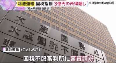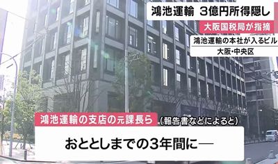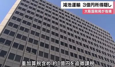 10月31日、物流大手「鴻池運輸」(大阪市)が大阪国税局の税務調査を受け、2023年3月期までの3年間に計約3億円の所得隠しを指摘された。重加算税を含めた約1億円が追徴課税されたという。