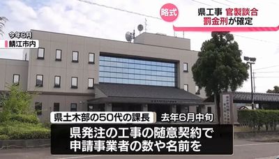 県が発注した公共工事の随意契約をめぐって、非公開の情報を漏らしたとして、官製談合防止法違反などの罪で略式命令を受けた県土木部の50代の課長と元職員で60代の男性が10月17日、「停職6か月」の懲戒処分を受けた。