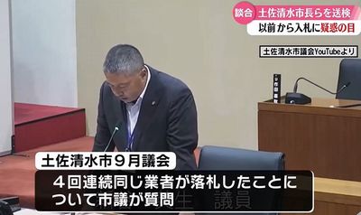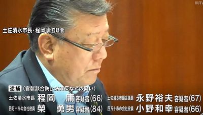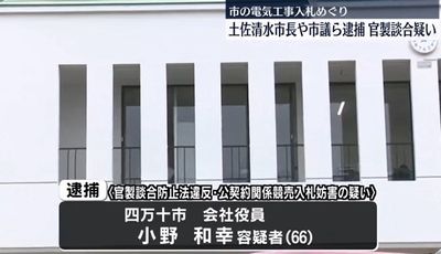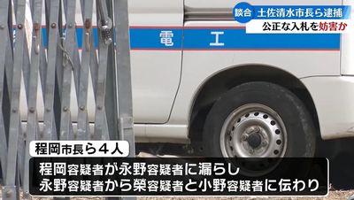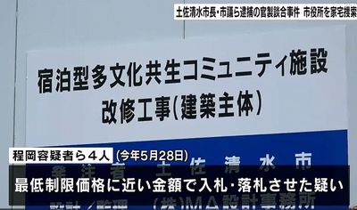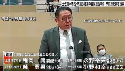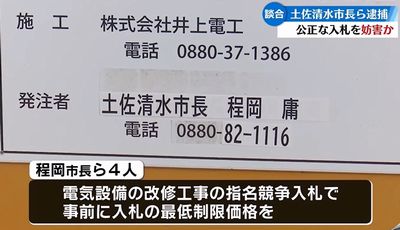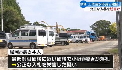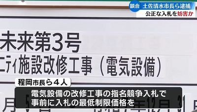 高知県土佐清水市が発注した宿泊施設改修工事の指名競争入札で、最低制限価格を漏らしたとして、県警は11月11日、官製談合防止法違反などの疑いで、土佐清水市長の程岡庸容疑者(66)ら4人を逮捕した。