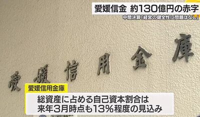 愛媛信用金庫は「赤字となり心配かけるが、経営の健全性を示す自己資本比率は今年度末で13%程度と、国内基準の4%を超える水準を確保できる見通しで、経営の健全性に問題はない」と説明している。