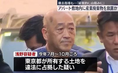 調べに対し浅野容疑者は、「東京都から撤去するよう指導を受けていたが、廃棄物を処理するお金がなく、結果的に山積みになってしまった」と容疑を認めている。