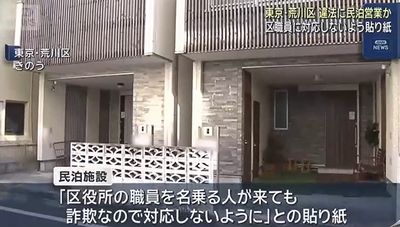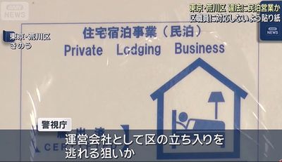 東京都荒川区にある民泊が11月28日、住宅宿泊事業法(通称・民泊新法)に違反した疑いで家宅捜索を受けた。条例に違反した状態で営業を続けていた疑いがあるといい、警視庁には騒音などの苦情が寄せられていた。同様のトラブルは各地であり、外国人排除の風潮につながった一因となったとされる。