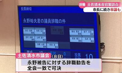 官製談合などの疑いで逮捕された程岡容疑者の辞職が12月1日に開会した土佐清水市議会で全会一致で同意された。