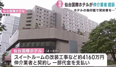 関係者によるとこの業者は、別の工事を巡ってホテルの印鑑を偽造したうえ偽の契約書を作成、市内青葉区のデザイン会社と工事の契約を結び、デザイン会社には「後でホテルから工事代金が支払われる」などと説明し、着手金として約6300万円を支払わせていた。