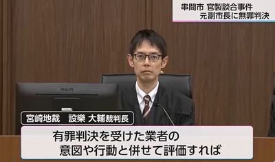 2023年4月、串間市が発注した消防庁舎新築工事の設計業務委託を巡る官製談合事件で、宮崎地裁は元副市長に無罪判決を言い渡した。