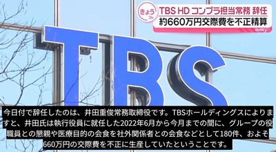 TBSホールディングスは12月上旬に井田氏による交際費の不正な精算がある旨の内部通報を受けたとし、外部専門家の協力を得ながら調査を実施。その結果として「実際には当社グループ役職員との懇親や慰労目的での会食等であったにもかかわらず、社外関係者との会食等として交際費の不正な精算申請を行い、申請額を同氏が受領していたことが判明いたしました」と発表。