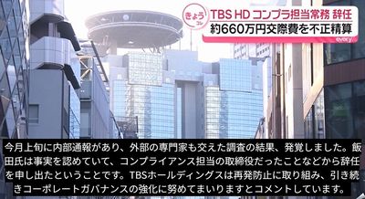 TBSホールディングスはコンプライアンス担当の取締役が交際費の不正な精算によって辞任したと発表した。