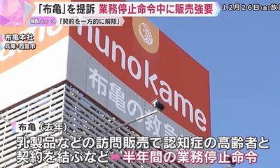 布亀は2024年、乳製品などの訪問販売で、認知症の高齢者と契約を結ぶなどして、消費者庁から半年間、業務の一部を停止するよう命令を受けた。