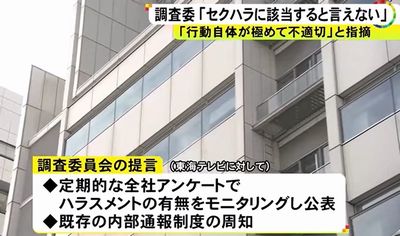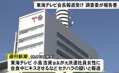 東海テレビ放送(名古屋市)は12月24日、小島浩資会長(67)が元派遣社員へのセクハラ疑惑などを週刊新潮に報じられた問題を受け、小島氏は23日付で会長と取締役を辞任したと発表した。同日公表した弁護士らによる調査委員会の調査報告書は、セクハラを認めなかったが、経営者として不適切な行為があったと判断した。