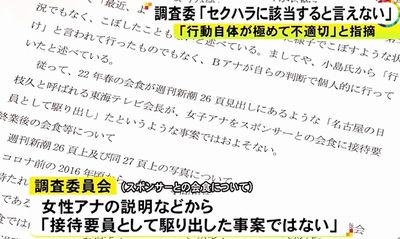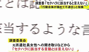 弁護士らで構成する調査委員会は24日夕方にホームページで報告書を公表し、セクハラ疑惑については元派遣社員の女性への聞き取り調査などから「セクハラに該当する言動をしていたとは言えない」としました。
