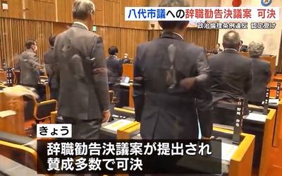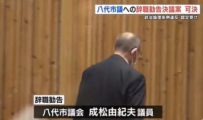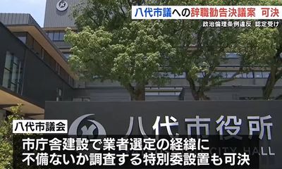 八代市議会は定例会最終日の23日、成松 市議への議員辞職勧告決議案を賛成多数で可決。この決議に法的拘束力はなく、成松 市議への辞職勧告は2025年3月に続き2度目となる。