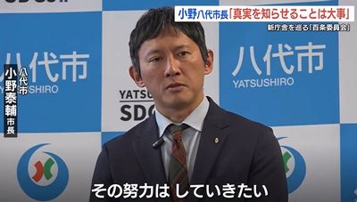 八代市の小野泰輔市長は、自身の就任前に行われた庁舎の建設工事をめぐり、市議会に設置された百条委員会について、「真実を市民に伝えることは大事」とし「新庁舎建設に関して色んな疑念を持たれている。それを明らかにしたいという議会の意思だと思う」述べました。