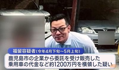 警察によると、東京都の無職福留和浩容疑者(48)は、2025年4月から5月にかけて、鹿児島市の企業から委託を受けて販売した乗用車の代金などおよそ1200万円を横領した疑い。