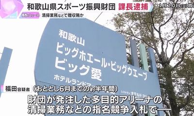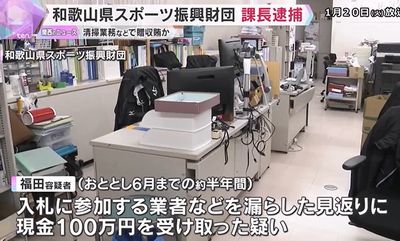 和歌山県スポーツ振興財団は、県から清掃業務などを請け負っていて、福田容疑者は当時、入札で業者を決めることができる立場だったという。