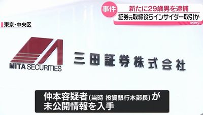 インサイダー取引をした疑いなどで「三田証券」の元幹部ら6人が逮捕された事件で、東京地検特捜部は2月10日、新たに男1人を逮捕しました。