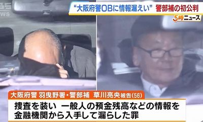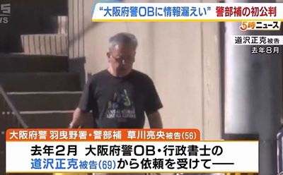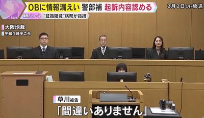 捜査と偽って入手した情報を大阪府警OBに漏らしたなどとして、地方公務員法(守秘義務)違反などの罪に問われた府警の警部補、草川亮央被告(56)の初公判が2月2日、大阪地裁(伊藤寛樹裁判長)で開かれ、草川被告は罪状認否で「間違いありません」と起訴内容を認めた。