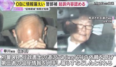 草川容疑者は事件当時、同署刑事課で詐欺や贈収賄などを手がける知能犯係に所属。道沢容疑者は、大がかりな知能事件を担当する府警捜査2課に後輩の草川容疑者とともに在籍していた時期があった。警部補だった2012年に退職し、その後、行政書士として活動。