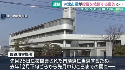 三重県津市の元市議会議員が、1月25日の市議選を前に有権者にプリペイドカードを配った買収の疑いで逮捕された。