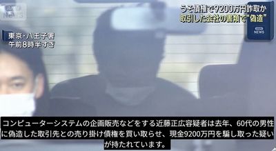 神奈川県小田原市の自営業・近藤正浩容疑者(60)は2025年6月、実在する会社の売掛債権を持っているとする偽の書類を作成したうえで、債権譲渡の契約を結ばせ、現金9200万円をだまし取った疑い。