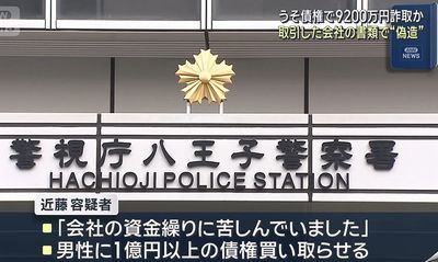 . 実在しない売掛債権を買い取らせ、現金9200万円をだまし取った疑いで60歳の男が逮捕された。