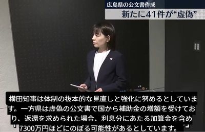 広島県が2018~24年度に実施した災害復旧工事を巡り、地権者らとの協議録など64件で虚偽の内容が含まれていることが確認された。横田知事は、県の慣習や組織文化に問題があったことを認めた上で、再発防止に努める方針を示した。