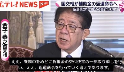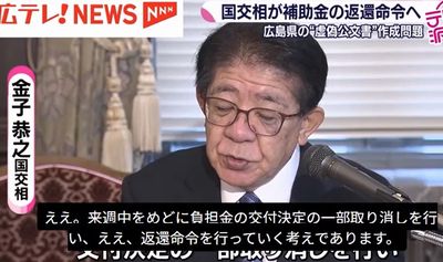 「虚偽の公文書を用いた国庫負担金の請求が行われたことは誠に遺憾であります」「来週中をメドに負担金の交付決定の一部取消しを行い、 返還命令を行っていく考えであります」