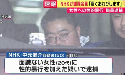 不同意性交の疑いで逮捕されたのは、東京・目黒区のNHK職員で報道局スポーツセンターのチーフディレクター・中元健介容疑者(50)。中元容疑者は2026年1月、渋谷区の路上で、通行人の20代女性に対して性的暴行を加えた疑い。
