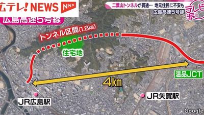 広島高速5号線の二葉山トンネルは、JR広島駅北口と高速1号線の温品ジャンクションを結び施工しているが、2024年6月13日現在、全長1.8kmのうち残りの掘削は約300mとなっている。