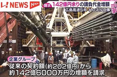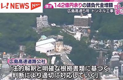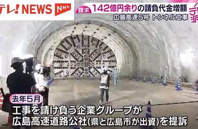 広島高速5号線のトンネル工事で、受注した大林組JVが142億円余りの請負代金の増額を請求していることが明らかになった。